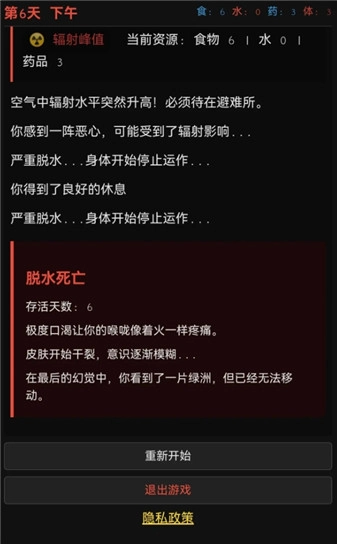 3、食物、水、药品、弹药以及能源这类资源都处于极度短缺的状态,必须对资源进行合理调配才能保障生存。