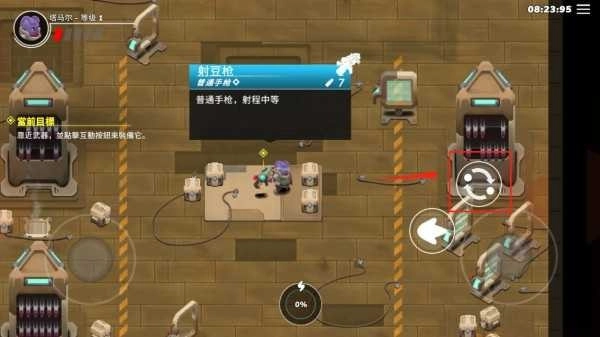 7、获取武器后,屏幕右侧会出现一个控制盘,点击该控制盘即可发射子弹,通过滑动操作能够调整射击方向,以便准备攻击敌人。