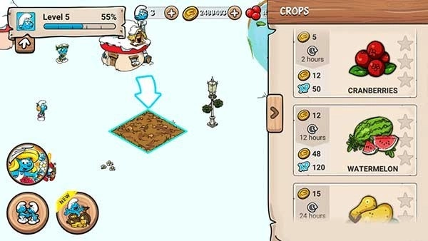 1、玩家可以先启动蓝精灵村庄中文版,点击土地开展种植操作。