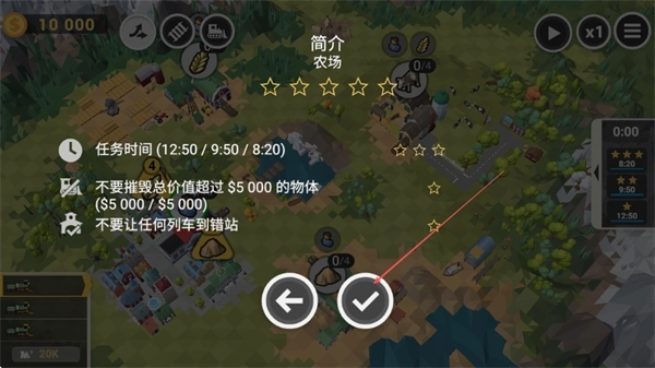1、查看简介里的任务控制任务时间,确保不摧毁价值超5000的物体,也不让列车停靠错误站点,之后点击确认开始任务。
