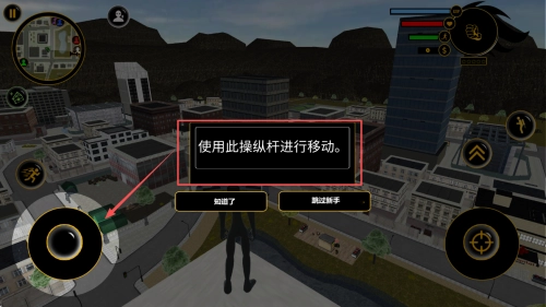 3、移动角色:使用左侧摇杆控制角色在场景中移动。