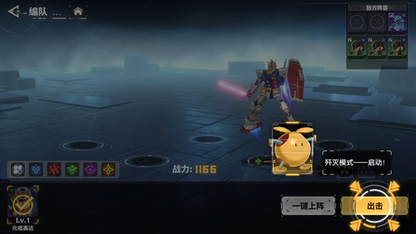 3、接着点击出击,选择要上场的高达机体