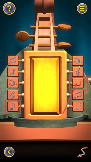 2、调整左右两侧的音符按钮,把对应的音符块匹配到指定位置,以此触发中间区域机关状态的变化。