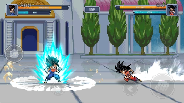 《龙珠战士超神之战》是一款基于经典热血格斗动漫《七龙珠》创作的同人格斗游戏。它采用简洁质朴的像素美术风格,角色造型高度还原原作特色;技能设计忠实于动漫设定,特效华丽夺目;背景音乐与音效充满激情,配合简单易上手的操作方式,让玩家能轻松沉浸在酣畅淋漓、热血沸腾的格斗体验中!