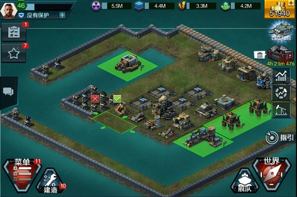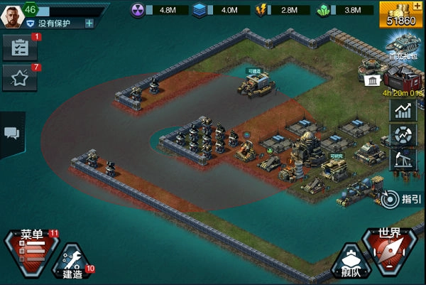 结合地形调整,在关键的路口与主要路线处部署炮台,通过集中火力来阻挡敌方舰艇接近基地设施。炮台能够配备专属武器,建议前期直接采用飞毛腿导弹开展防御工作。