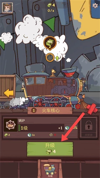 游戏初期,玩家从经营小火车起步,需要点击车头图标来获取运营资金。