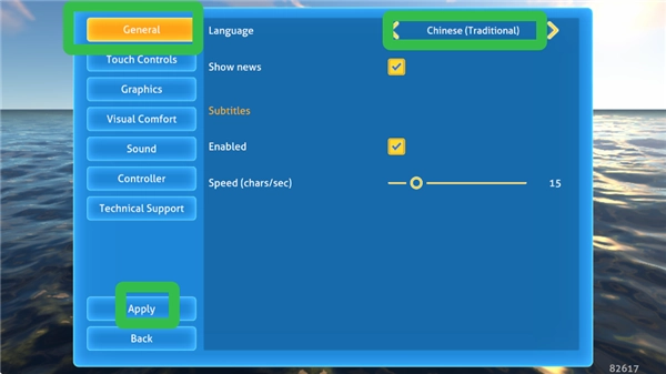2、在【General】一栏切换语言至Chinese (Traditional),然后点击【Apply】。