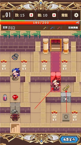 进入下一层后,把红色小恶魔打败就能拿到黄色钥匙,之后再回到上一层。