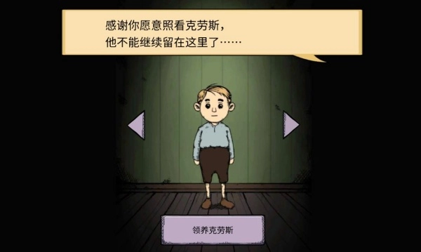 1、进入游戏,通过剧情引导,你将领养一个孩子克拉斯。