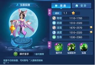 玉面狐狸是适合新手的单体奶妈之一,具备持续回奶能力。尽管她没有复活和加buff的技能,但奶量相当充足~
