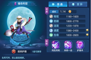 催命判官:别看他身形单薄,可他真的是个“肉盾型”角色。为啥这么说?因为他的核心技能“同生共死”能帮队友分摊伤害,要是再搭配个能群体治疗的奶妈,那效果简直让人不敢想,画面肯定特别“美好”。