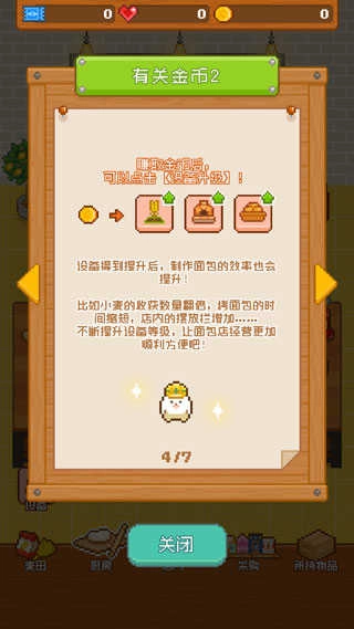 设备升级后,制作面包的效率将随之提高,具体表现为小麦收获量翻倍、面包烤制时间缩短、店内陈列栏增加等方面,因此需要持续提升设备等级。