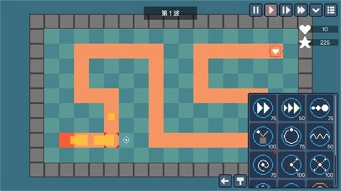选择其中一个关卡后,画面正上方会显示当前波数,玩家需要在每一波敌人进攻时将它们全部消灭。