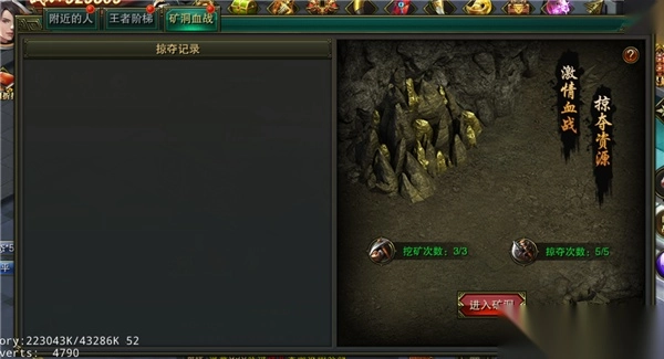 竞技玩法包含附近的人、王者阶梯、矿洞血战这三种PK模式!