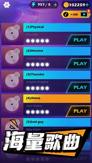 游戏难度会循序渐进提升,你会遇到丰富关卡,还拥有许多歌曲选择;