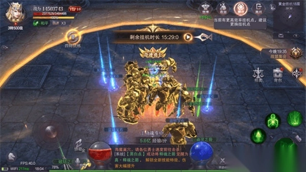 我们为玩家准备了黄金挂机玩法,开启后能进入专属的黄金地图进行挂机,角色将自动获取经验值。