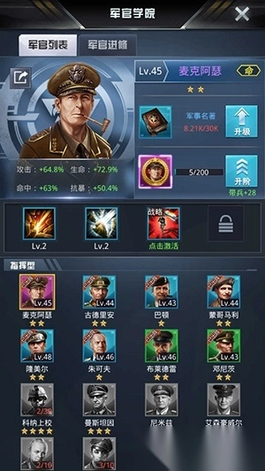 我的使命vivo版包含麦克阿瑟、古德里安、巴顿、蒙哥马利、隆美尔、朱可夫、布莱德雷、邓尼茨等众多军官角色。