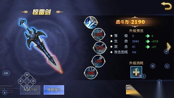 第三种途径是神器升阶,本次要推荐的神器为惊雷剑。这把武器能带来较为出色的攻防属性加成,并且在攻击过程中会触发额外的麻痹效果。在此建议玩家将惊雷剑的等级提升至41阶上下,如此一来,不仅能实现自身能力的增强,还会解锁全新的技能。