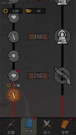 在主界面点击“修炼”选项,就能通过消耗铜币解锁各类天赋与技能。
