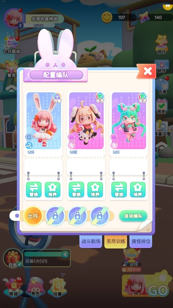 在开启挑战之前,我们能够去编辑自己的跑酷小队,小队成员最多可以有3个人。
