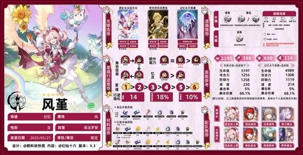 一图流包含面板参考、技能升级建议、星魂推荐、光锥挑选、遗器搭配、队伍组合推荐以及材料培养指南。仔细看完这份一图流,相信大家能对风堇的培养方式和玩法思路有全面且细致的认识。如果大家对一图流有任何改进建议,欢迎在评论区分享您的想法,我会持续对一图流内容进行更新优化。