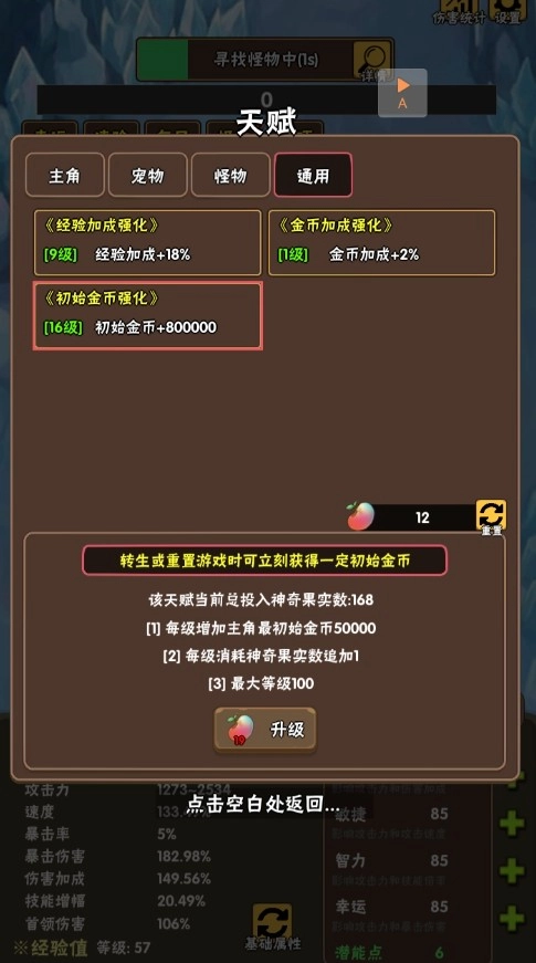 如图所示,先把所有初始金币的加点都点满,接着去商城购买经验。至少要点到42级之后,再继续点经验加成相关的选项。要优先将初始金币和经验加成这两项都拉到满值。