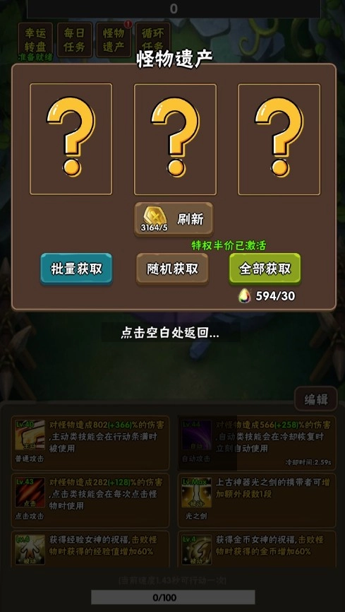 打怪物会掉落怪物遗产,点击后可用于抽取技能经验。当前版本的盗贼需15转后才能解锁(10转前可一直刷普通难度加速解锁),因此前期建议尽量保留遗产碎片,等盗贼三转(小偷路线)后再一次性使用。
