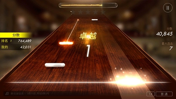 你可以通过滑动屏幕、敲击或长按来进行操作,在钢琴演奏结束前尽量获取更高分数,左侧还能查看自己与第一名的差距。