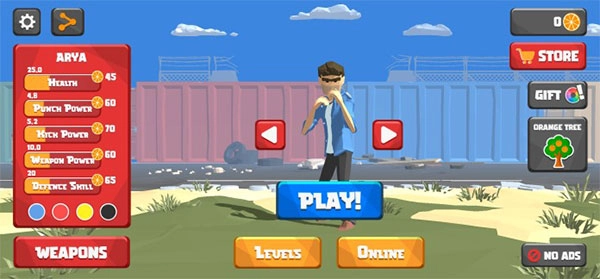 1、进入街头搏斗游戏后,挑选好你的角色,点击“PLAY”按钮就能开启游戏;