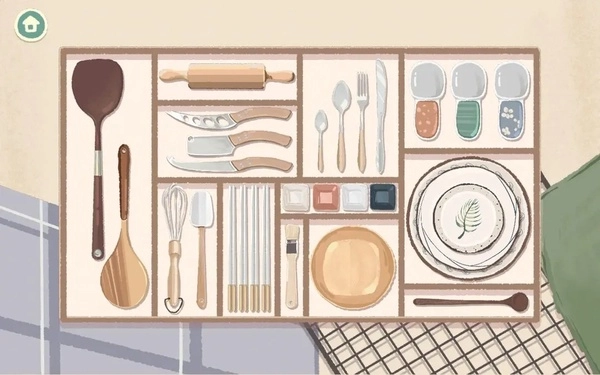 个性化装饰:通过完成任务,能够解锁多种风格的收纳容器与背景主题,像北欧风、复古风这类不同风格都包含在内。