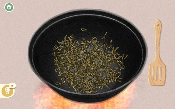 东方茶叶的制作步骤如下:炒制时需用大火翻炒五次,期间保持铲子绕圈的动作;炒好后倒在纱布上,用石头进行按压;最后完成包装工序。