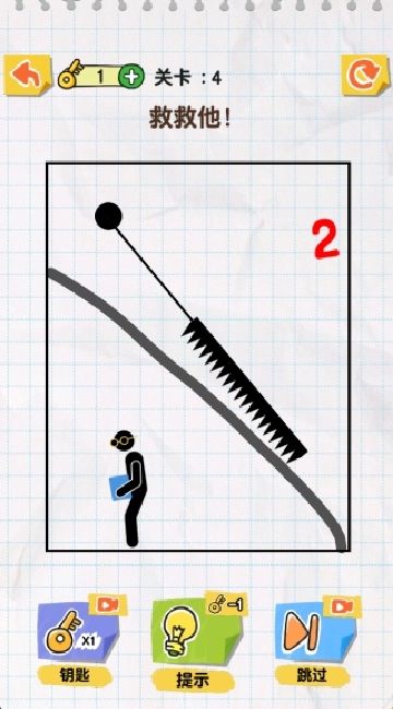3、每次画线之后,在倒计时结束之前,火柴人安全即可过关获胜。