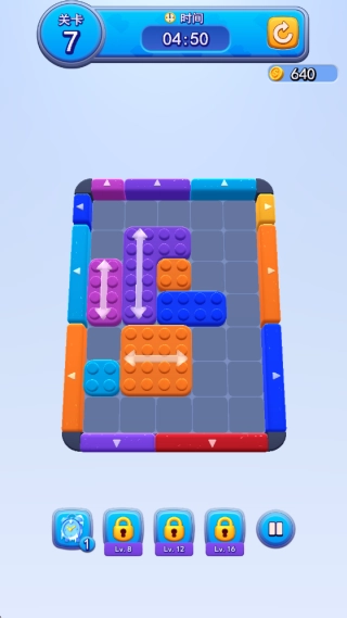 2、游戏规则简单容易上手,但随着关卡推进难度会逐步提升,你需要持续点击并移动不同颜色的方块来完成消除。