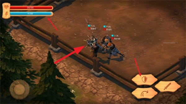 1、进入游戏关卡后,用左下角的摇杆操控角色移动,接着点击剑的图标,即可触发攻击。