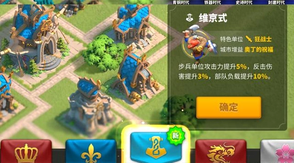 例如维京式文明的加成效果为:步兵攻击力提高5%,反击伤害增加3%,此外部队负载也会提升10%。