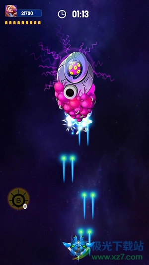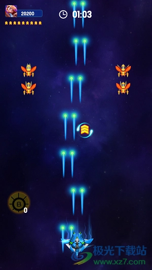 2、长按你的飞机即可实现操控,能控制战机上下左右移动,从而躲避敌人的攻击。