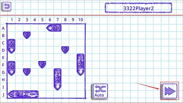 3、接着便进入一号玩家的布阵阶段,在此阶段,点击Auto按钮能够一键随机完成布阵,布阵结束后点击右下角的【下一步】图标即可。