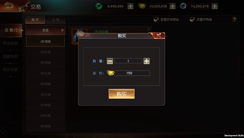 交易行包含两大板块,分别是装备和杂项。在装备类别里,能够购买不同阶数的橙装与红装级别的装备!
