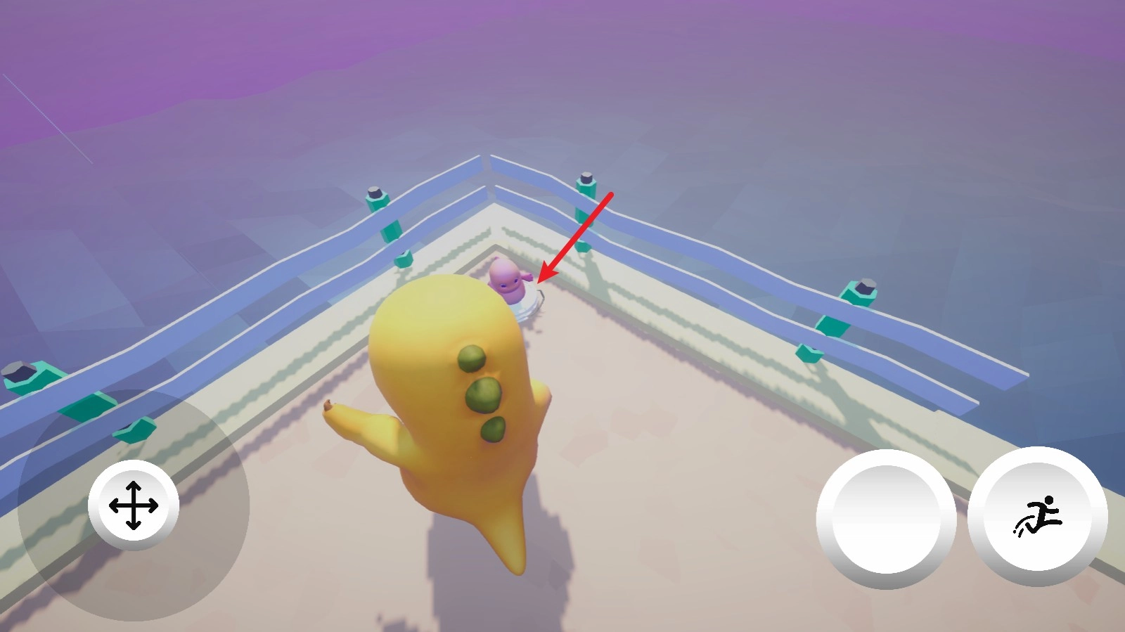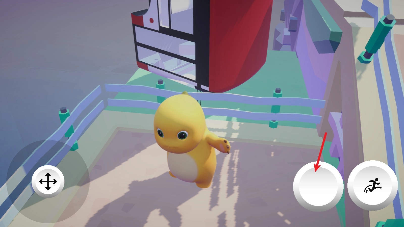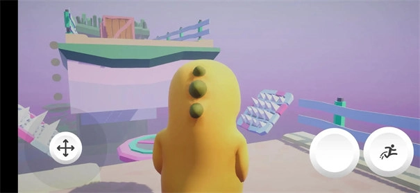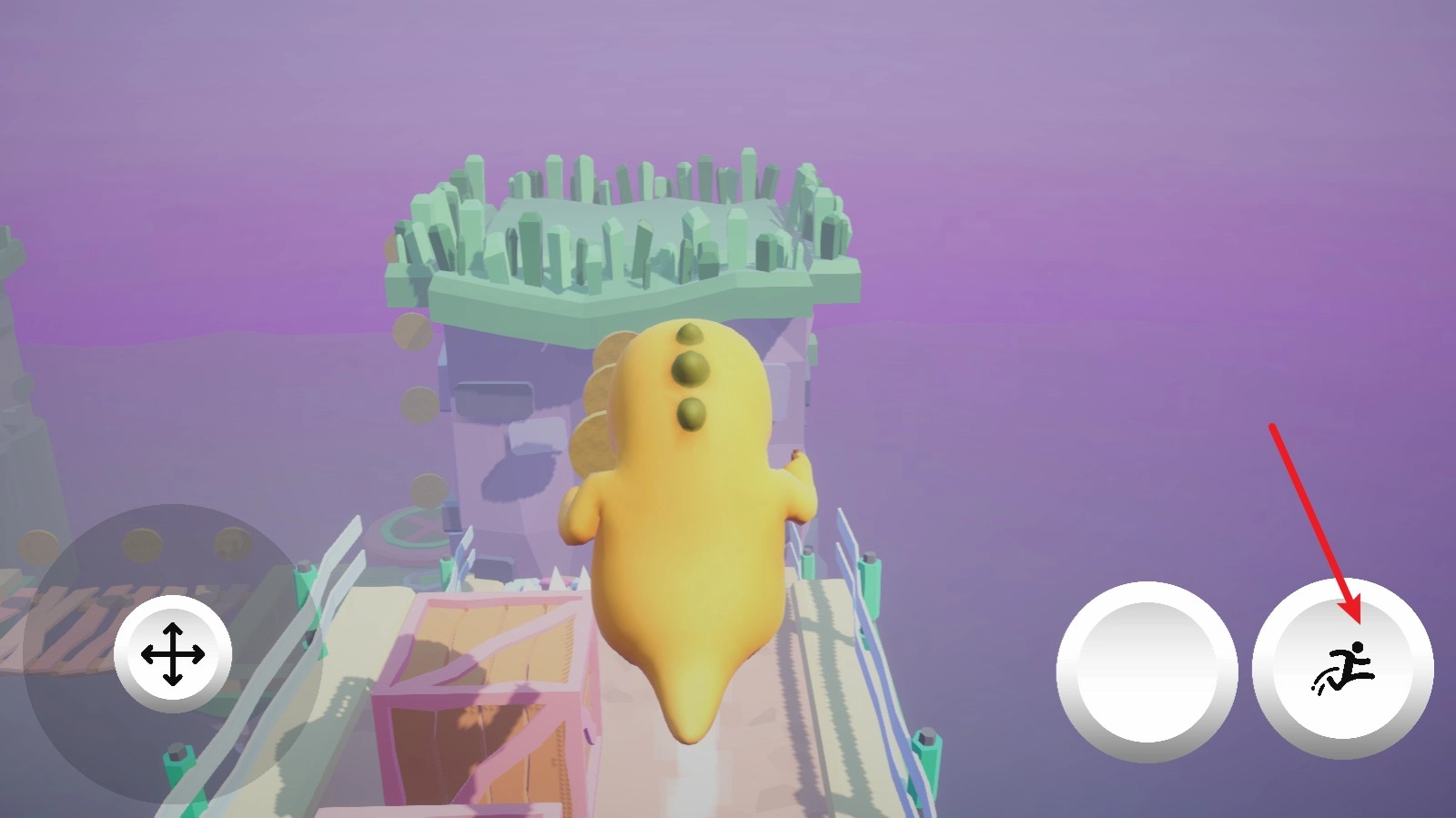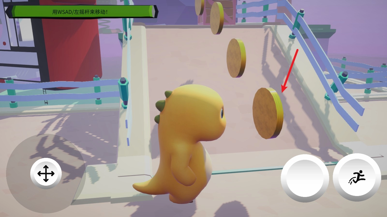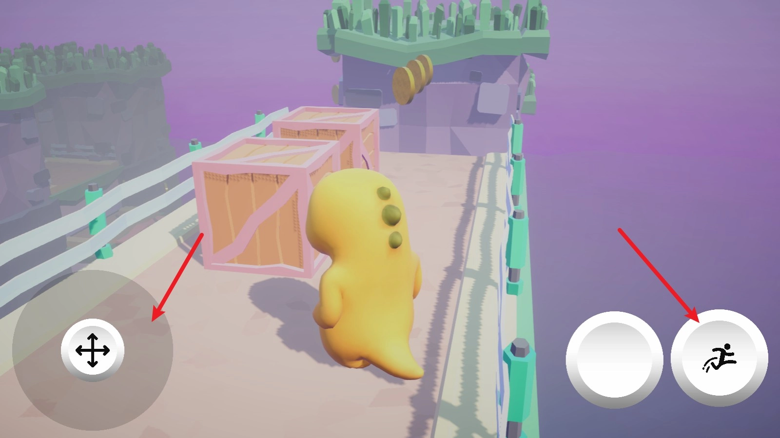 进入游戏后,我们会直接出现在地图里,左边的摇杆用来控制移动,最右边的按钮则能实现跳跃。