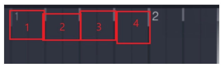 然后我们发简谱中每个小节有四个数字,而在调教界面中每个数字界面正好有四个大格