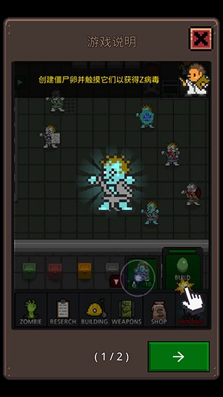 合并僵尸是一款像素风休闲合成策略类型的游戏。玩家将化身为生物博士,通过合成同等级僵尸提升战力。玩家需要先点击孵化舱生成僵尸卵,触碰卵获取Z病毒,用来培育基础僵尸。把相同等级僵尸完成合并,进化为更高等级个体。游戏只需要点击狩猎按钮,僵尸军团就会自动出战,不需要手动操作。在遭遇变异BOSS、外星入侵者等,就需要玩家调整兵种配比应对挑战,在胜利后获取金币、材料、钻石等战利品。