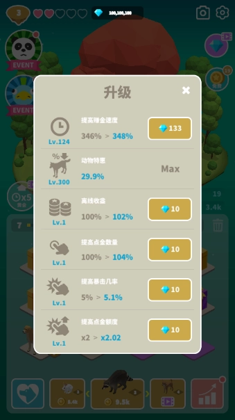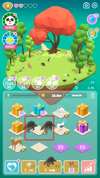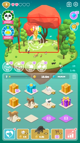 合成出的动物都会在小岛上给你产出金币