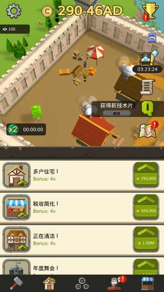 完成任务领取奖励,通过投资积累更多财富,创建属于你的中世纪公司。各式各样的建筑物能助力你发展这个中世纪闲置王国,进而收集到更多金钱。