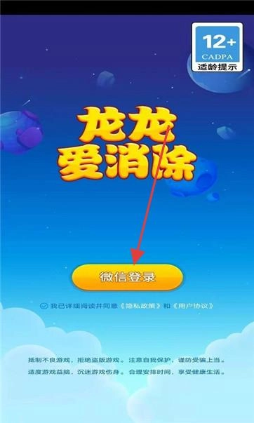 1、打开游戏界面后,找到并点击“微信登录”按钮,完成登录流程,即可开启消除游戏的旅程。