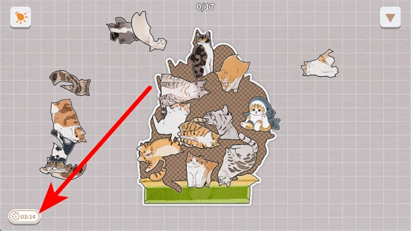 3、拼接的时候,得随时留意时间,妥善把控操作的节奏,尽量在计时结束前,把猫咪图案的拼接任务顺利完成,从而赢得游戏胜利。