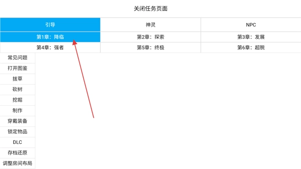 2、在任务页面选择第1章:降临,查看该章节下的引导任务,明确当前需完成的操作目标。