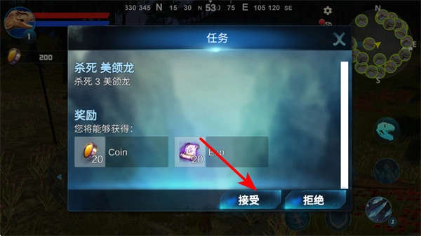 在任务界面点击接受按钮,就能领取击杀美颌龙的任务;完成该任务后,可获得金币与经验奖励,这是快速提升等级的有效途径。