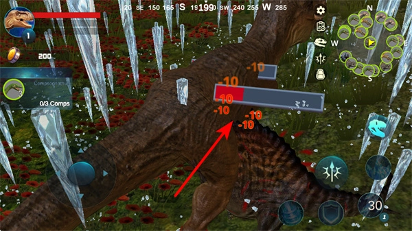 操控霸王龙去接近美颌龙这类猎物时,要借助地图与虚拟摇杆来精准锁定目标,而靠近猎物正是发起有效攻击的必要前提。