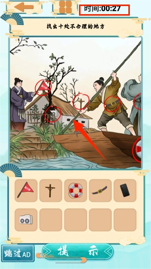 2、认真留意场景里的每一个细节,要从画面中找出十处违背常理的错误设定。这些反常的地方或许隐藏在各个角落。