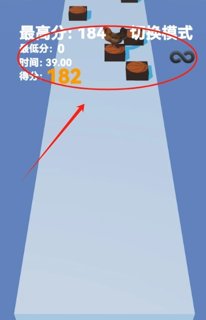 3、成功闯关可以在屏幕上方看到分数,来解锁不同造型的小鸡角色,挑战更高难度的限时模式。
